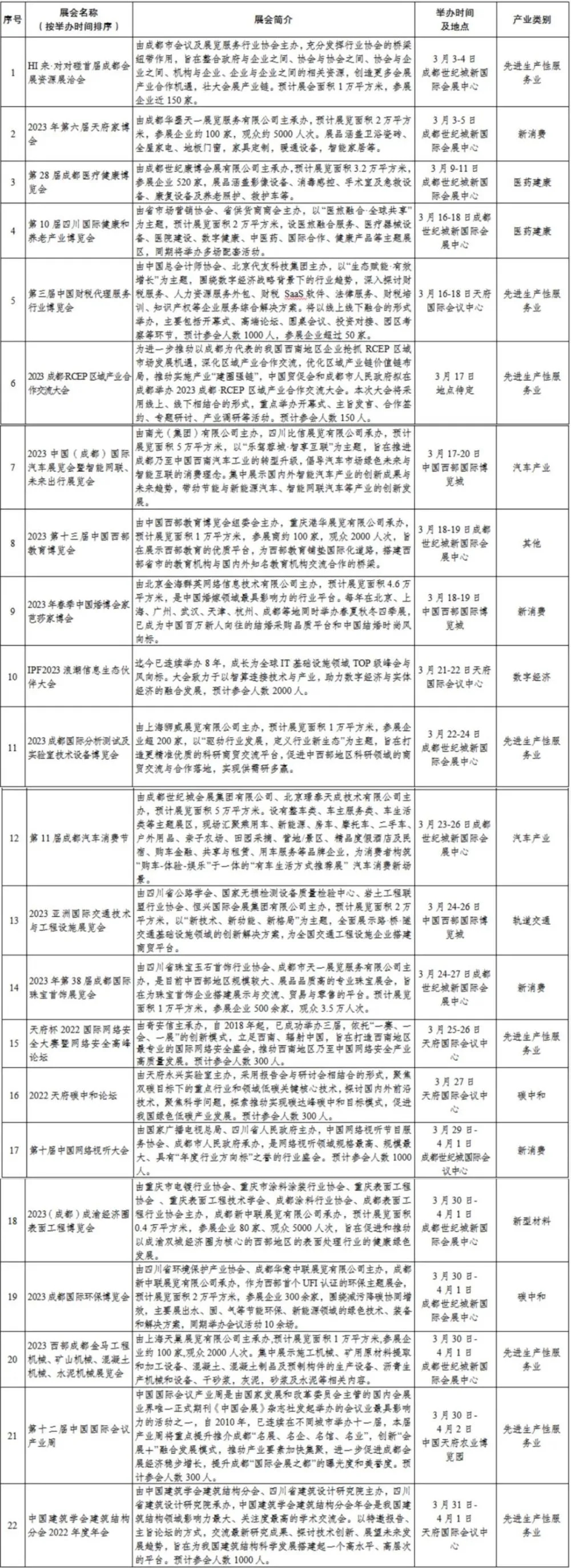 成都展覽設計公司了解到3月份成都擬舉辦展3月成都擬舉辦重要會展活動共22個會展活動共22個